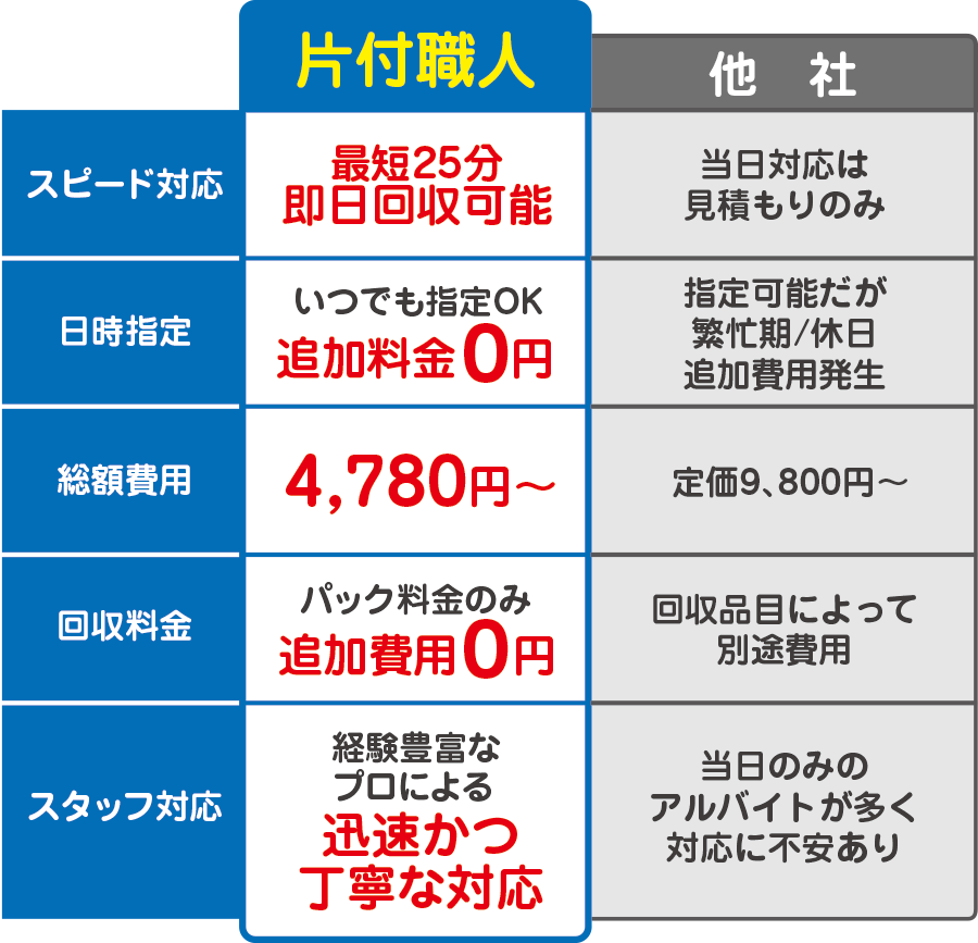 大型家具や家電、1R~1Kの片付けに適したプランです。