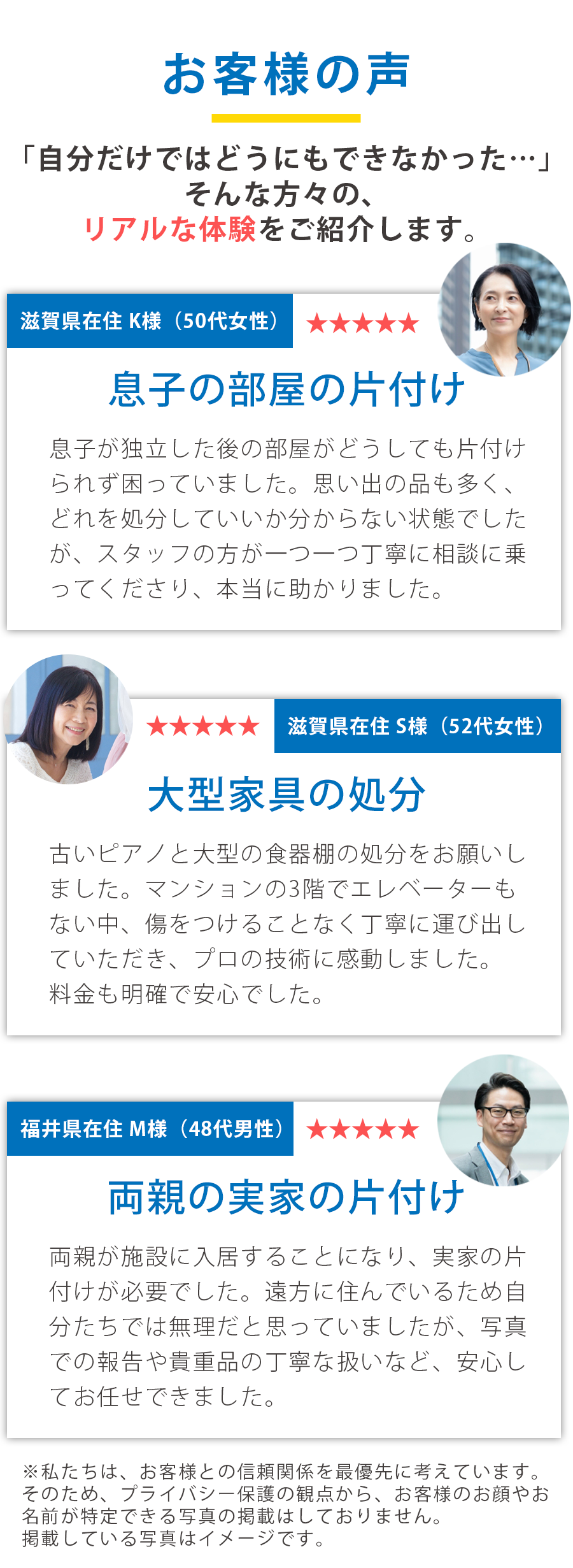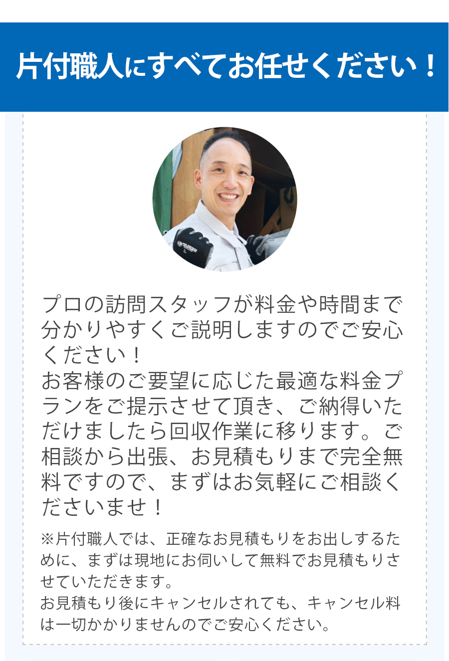 不用品の量や種類、処分に必要な作業の難易度によって料金が変動します。無料見積もりを提供しており、お客様にご納得いただいた上でサービスを開始します。