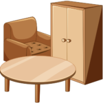 タンス、食器棚、テーブル、ダイニングテーブル、洗濯機、冷蔵庫、ベッドなど